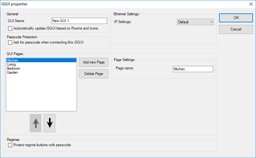 - Met behulp van de pijl omhoog of de pijl omlaag kunt u de rangorde van de geselecteerde GUI pagina wijzigen.