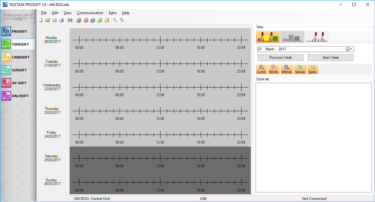 En plus, les solutions de TELETASK avec TIMESOFT sont très flexibles et adaptables à votre rythme de vie privée. En tant qu’utilisateur, vous pouvez adapter facilement ces puissantes fonctionnalités. Par exemple, vous pouvez activer l’éclairage du jardin à un autre moment pendant l’été que pendant l’hiver. Peut-être que votre rythme de travail est différent de votre rythme de travail normal pendant certaines périodes de l’année. Pour toutes ces actions, TIMESOFT est le progiciel idéal pour l’installateur électrotechnicien ainsi que pour l’utilisateur final, qui veut garder le contrôle complet de toutes les actions d’horloge de la maison. Il y a plusieurs moyens de modifier les horloges dans un système TELETASK, même sans un PC, mais TIMESOFT est l’outil adapté pour obtenir un aperçu de toutes les actions d’horloge et les modifier, si nécessaire.