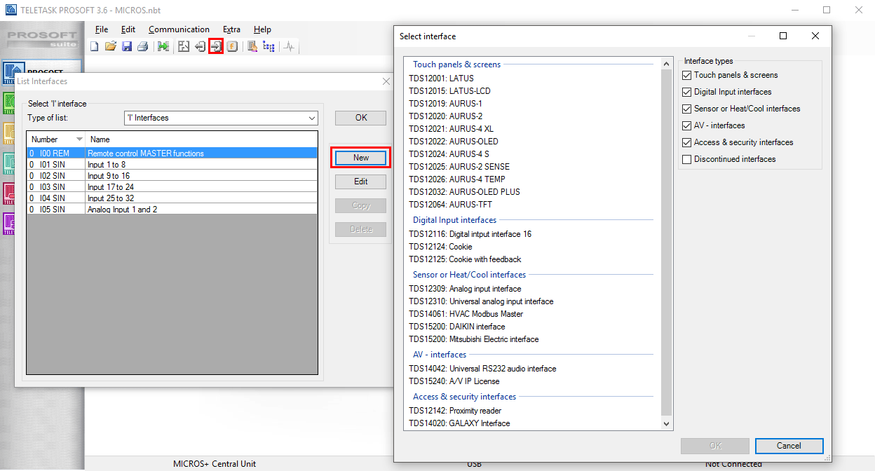 - Repeat this way of working for all TELETASK 'I' interfaces which you want to add in your project.