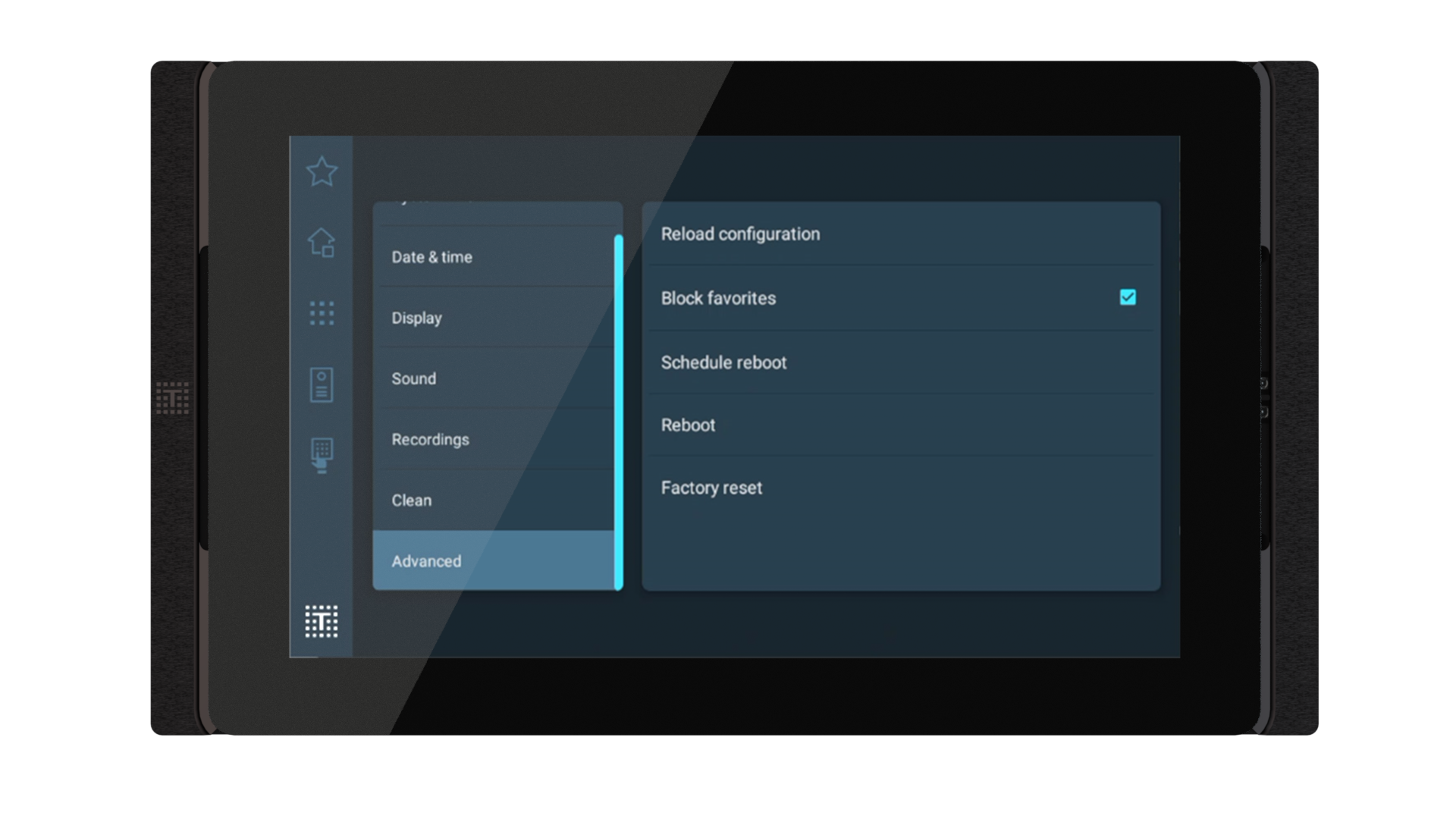 - Open the settings menu of the OPUS (long click in the lower left corner on the TELETASK logo).
