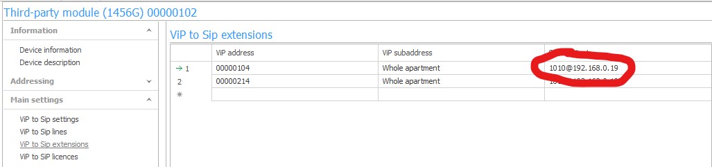 ViP to Sip setting: