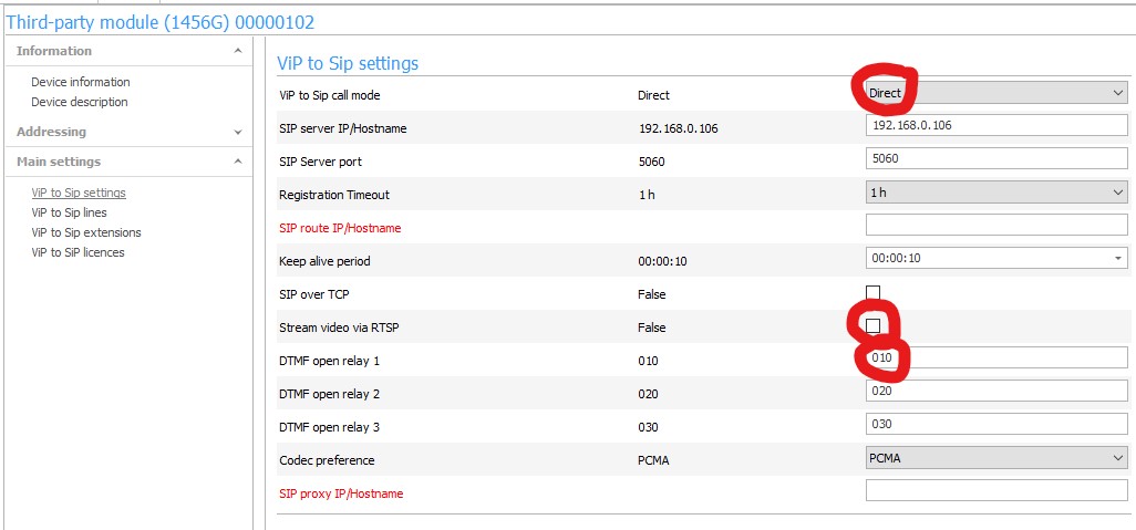 Set ViP to Sip call mode to 'Direct'