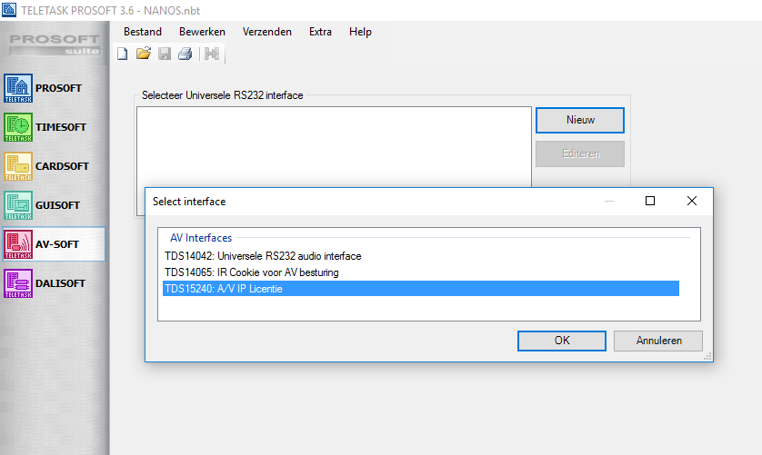 - Select “TDS15240:A/V IP License” interface