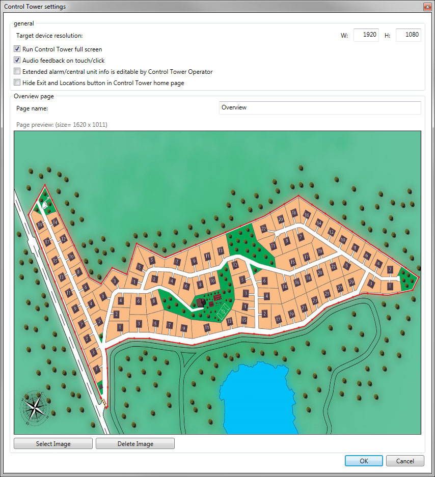 Now the Central Units and alarms are defined, the actual Control Tower configuration can be done. The first step is to set some general Control Tower settings. To do so, click the ‘Overview Page’ item in the ‘Edit menu’ or click the Edit button at the bottom of the page.