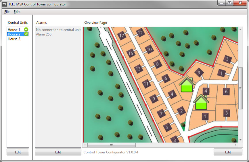 symbol next to ‘House 1’ and ‘House 2’ indicates that these Central Units have already been added to the overview page House 3 is not yet added to the overview page.
