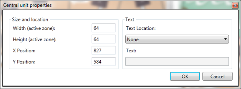 TIP: the Control Tower configurator will use the last Width, Height and Text Location in this window as default values for the next Central Units you drag on to the overview page. So if you would like the Width and the Height for all Central Unit items to be 72, drag the first Central Unit on the overview page, and change the size. When you drag the other Central Units on the overview page their size will now be set to 72x72.