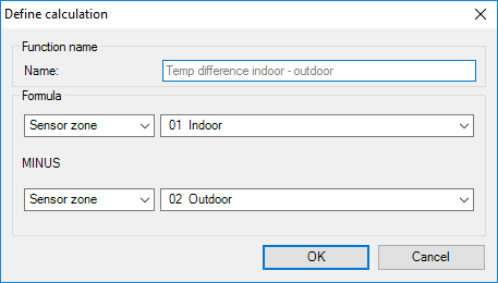 - ‘Formule’: selecteer hier twee temperatuur sensoren. De tweede waarde zal van de eerste waarde afgetrokken worden.