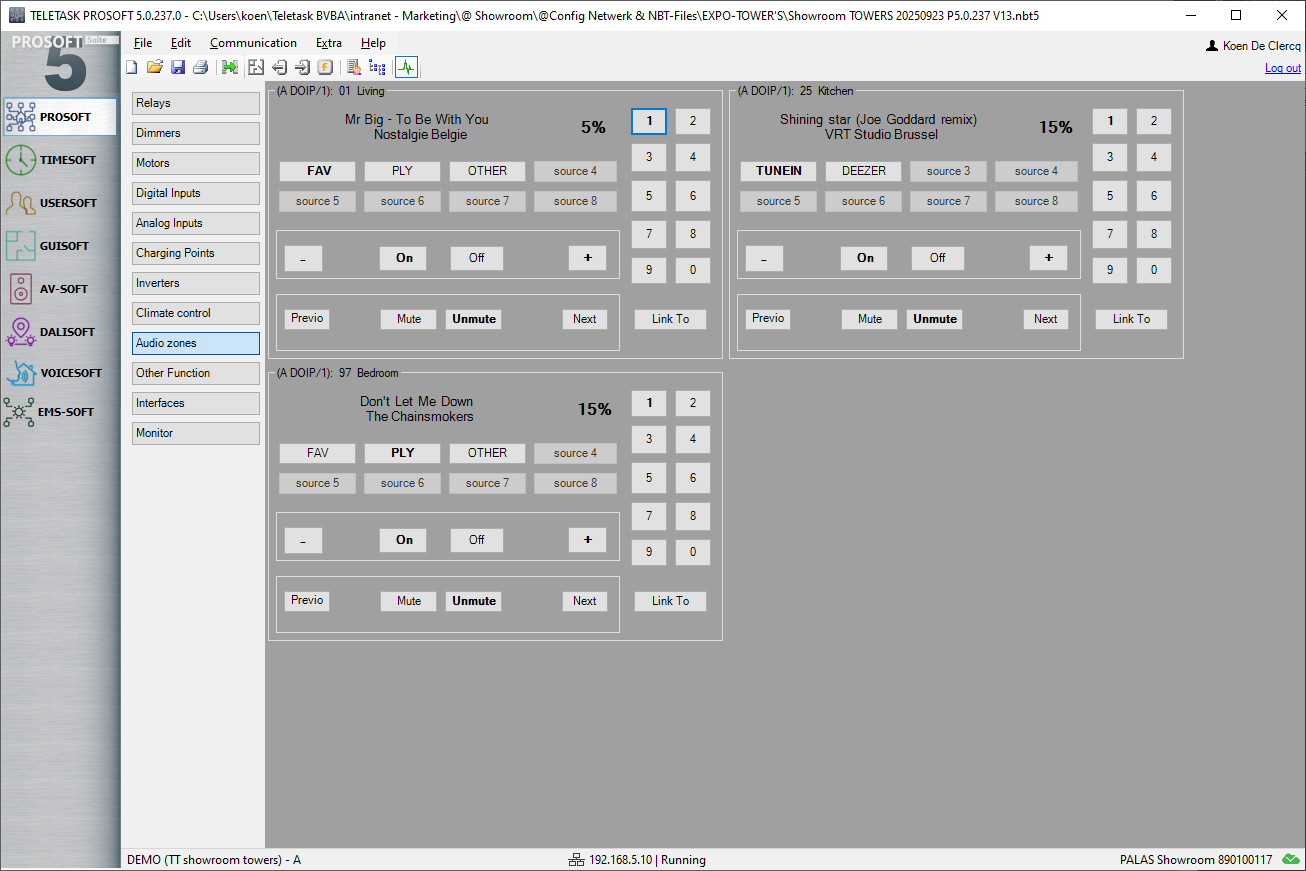 The same also applies to audio zones: In PROSOFT 5 diagnostics, you can view and control all configured audio zones. This makes testing and debugging very efficient – whether during initial configuration or when a customer adds a new audio device to the installation.