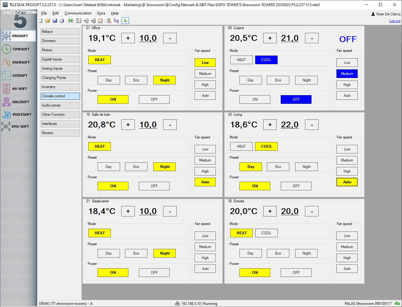 TELETASK tries to make device setup and support as simple and powerful as possible. A good example is the use of diagnostics for climate control; both locally on-site and remotely. You don’t need to go to an ATMOS, OPUS, or PENTUS to fully control and test a zone.