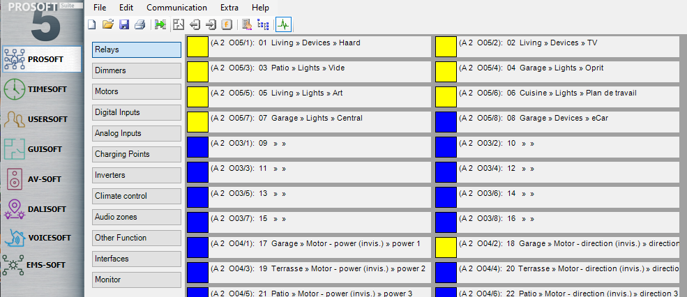 Diagnostics is a tool within PROSOFT that allows the user to check the status of outputs, inputs, and interfaces of the connected central unit. It also provides the possibility to change the status of certain outputs and functions. Real-time event monitoring is another key feature.