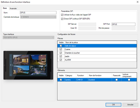 TELETASK function: Select a function that can be executed from the OPUS during a call to open the front door or what was configured in the function.