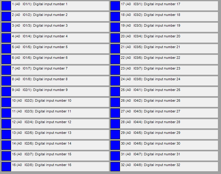 Les entrées numériques indiquent l'état des entrées numériques de l'unité centrale (MICROS+/PICOS uniquement) et des interfaces TDS12117, TDS12134 et TDS12135.