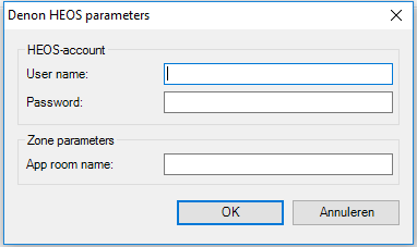 Now click ‘OK’ and enter the HEOS parameters: