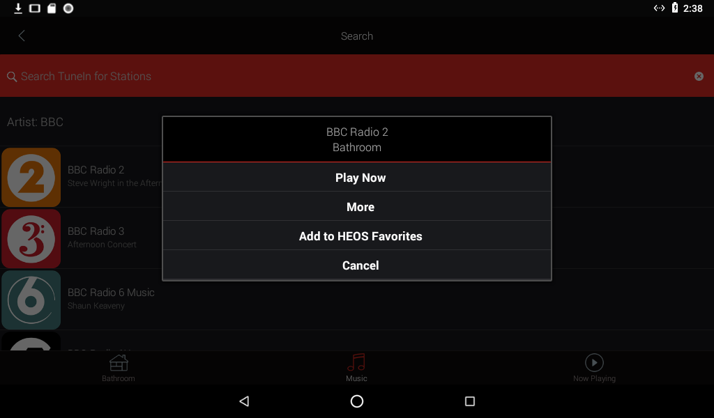 By clicking on 'Add to HEOS Favorites' the station is added to the Favorites list.