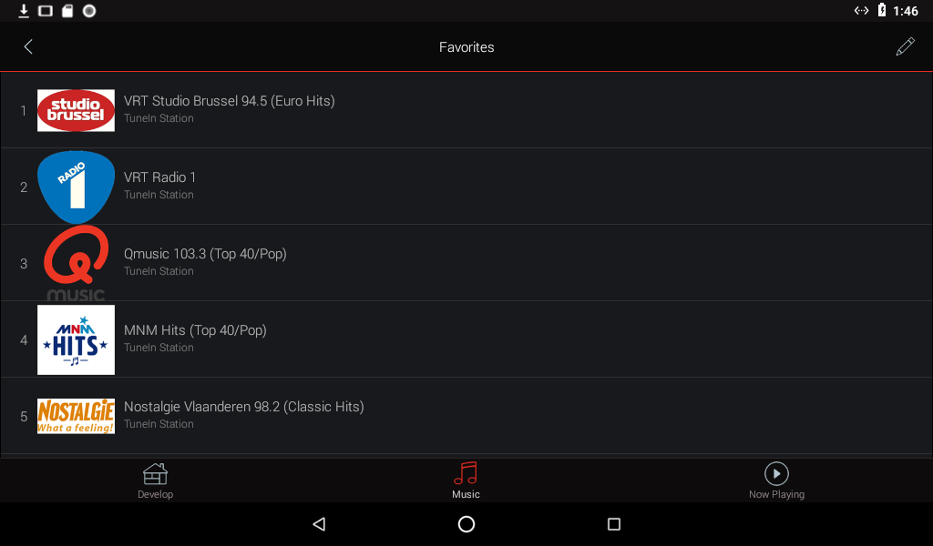 These are radio stations (in our example from the online radio source “Tunein”), that are stored in the 'Favorites' list of the Heos Account