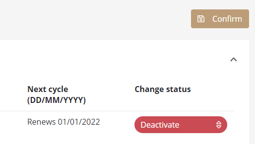 U (de SI) wordt twee maanden voor de vervaldatum op de hoogte gebracht van alle abonnementen die automatisch zullen worden verlengd. U krijgt echter geen verwittiging voor de ‘deactivated’ abonnementen. Zie hoofdstuk automatische verlenging voor meer informatie hierover.