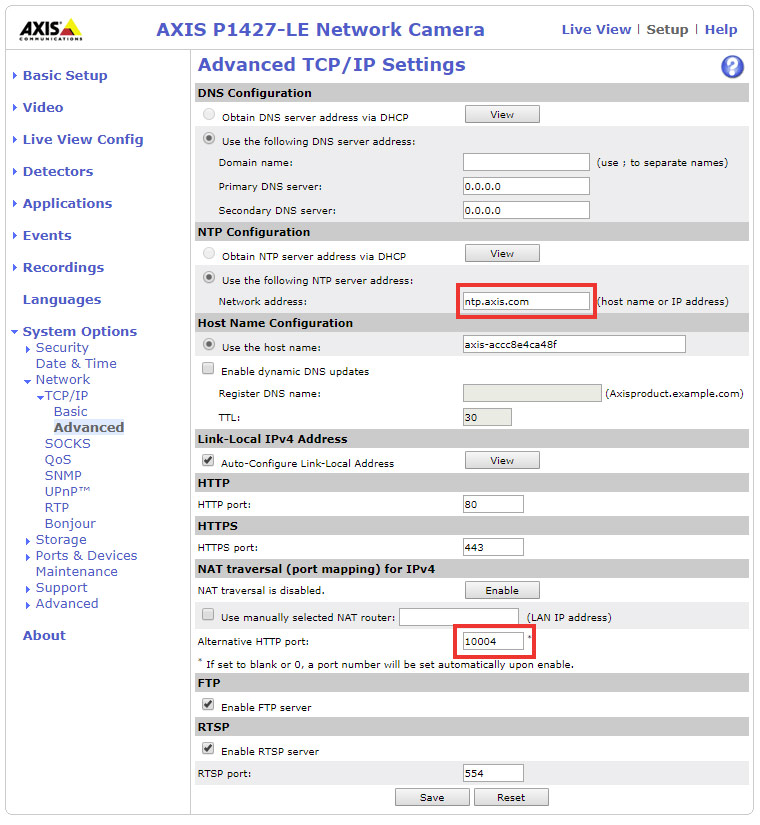 Below you can see how to do so in the settings of the Axis camera P1447-LE as used in our example case.