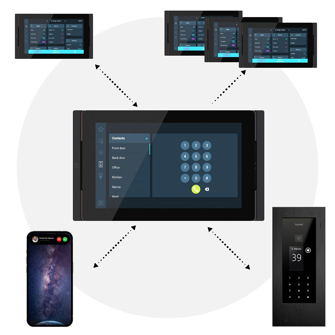 Si vous disposez d'un serveur VoIP SIP, l'écran tactile OPUS peut y être connecté, par exemple en tant qu'appareil intérieur mains libres pour portier vidéo. Mais une fonction interphone est également possible. Cela donne alors la possibilité de passer des appels entre différents appareils OPUS.