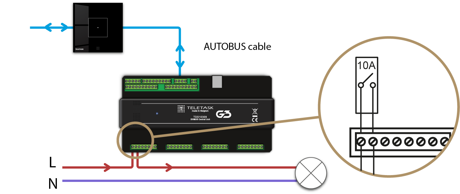 Enfin, vous pouvez exploiter la fonction RELAIS ou de commutation au sein d'une fonction ‘Ambiance Locale’ lorsque vous avez besoin de définir plusieurs relais et/ou gradateurs à des états spécifiques en cliquant simplement sur un bouton ou en fermant un contact d'entrée. Par exemple, cela est pratique lorsque vous quittez une certaine pièce dans laquelle vous avez divers appareils à gérer. Typiquement, ces appareils comprennent des prises murales, des lumières, des moteurs de rideaux/volets, des fonctions climatisation et audio.