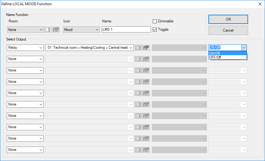 - ce paramètre définit quel est le relais commuté par cette fonction.