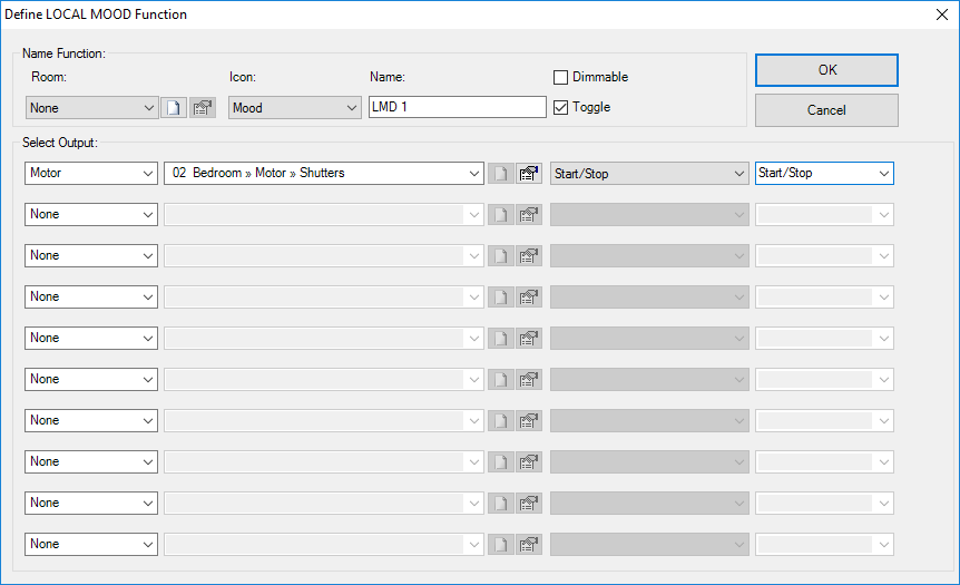 - Faites votre propre ‘fonction moteur’ qui contrôlera des relais de sortie standard. Dans ce cas, vous utilisez uniquement des relais d'une PICOS ou des interfaces TDS13510, 13512 ou TDS13504. Dans ce cas, il peut être nécessaire d’utiliser 1, 2 ou 3 relais, en fonction de l'application. Voir tous les détails ci-dessous dans le chapitre ‘fonction moteur’.
