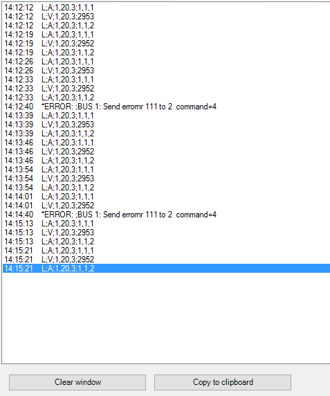 | Log | Interface gestart | Centrale Eenheid nr (0= niet gelinkt) | AUTOBUS Nr | AUTOBUS Adres | |||