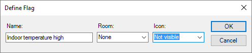 We will configure a ‘Flag’ as the ‘cooling’ output, this flag will then be used in the next steps to check if the ‘night cooling’ needs to be activated. It is possible to configure the night cooling without the use of this flag (e.g. when no sensor without a ‘cooling output’ is availabe), but using this flag allows for the end user, to change the temperature at which ‘night cooling’ needs to be activated. It also