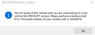 Once this procedure has been successful, your central unit is ready to upgrade to PROSOFT 5.