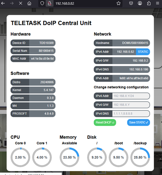 Now you will automatically end up on the central unit via your browser (see capture below):