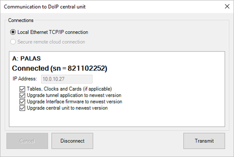 Click on transmit, the central will be upgraded and will then run completely on the new PROSOFT 5 package.