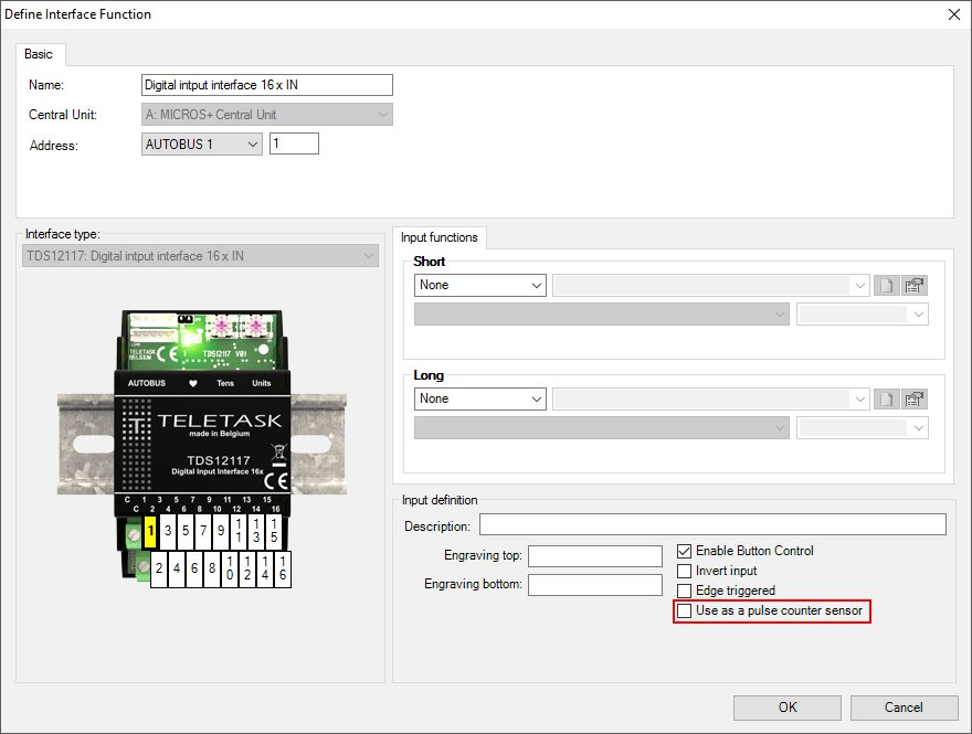 In PROSOFT Suite kan een puls sensor aangemaakt worden door voor de gewenste ingang van de TDS12117 de optie “gebruik als puls teller sensor” aan te vinken.