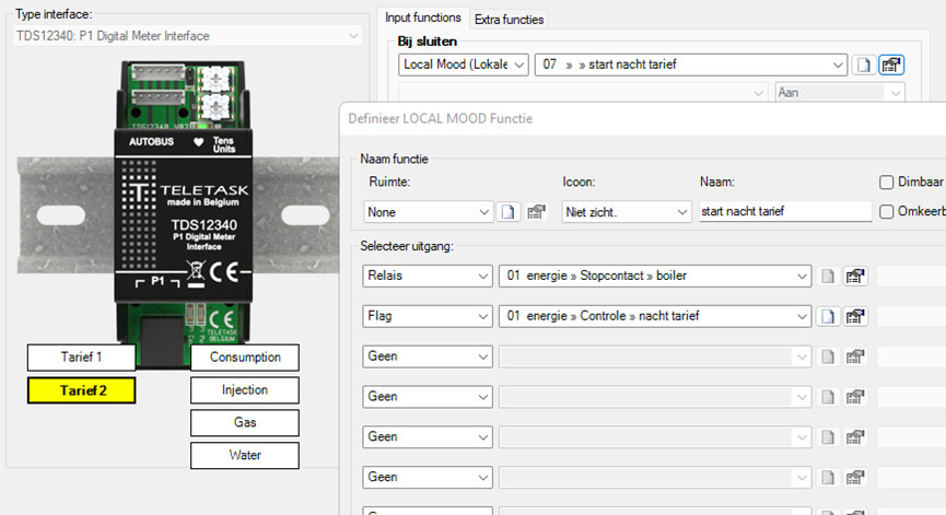 Ambiance Locale -> Tarif de nuit de départ. Par exemple, on peut changer de relais pour allumer une chaudière électrique afin qu’elle soit certainement allumée à ce rythme. De plus, on peut activer / désactiver un drapeau pour la visualisation sur les interfaces utilisateur. Pour le « taux 1 », nous avons mis le drapeau pour le tarif de nuit dans notre exemple. En général, il est donc possible d’activer/désactiver certains appareils.