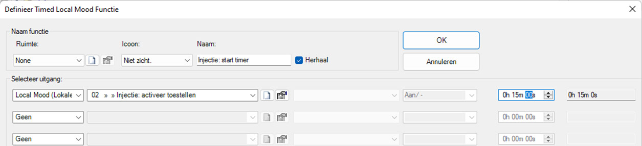 Une fois le temps écoulé (dans notre cas 15 minutes), nous commençons une nouvelle LM Ambiance Locale (LM) (irréversible) dans laquelle nous appelons le « Si alors différent » (If-Then-Else) qui contrôle la première étape et l’exécute si nécessaire.