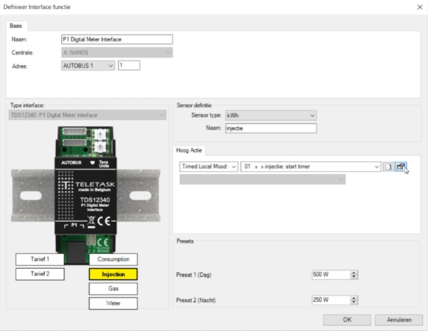 Type de capteur: kWhNom: InjectionAction élevée: MoodPreset local chronométré (dépend de l’installation et selon les souhaits du client):