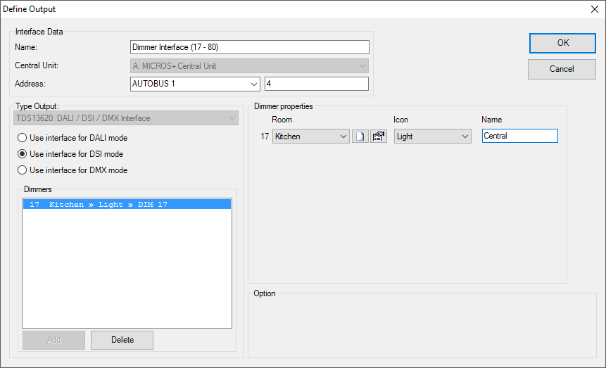 L’interface DALI/DSI/DMW est une interface de sortie qui peut être employée dans le mode DALI ou DSI ou DMX.