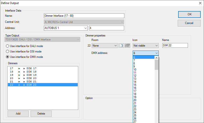 Suivant le mode, vous pouvez configurer jusqu’à 64 variateurs sur cette interface.