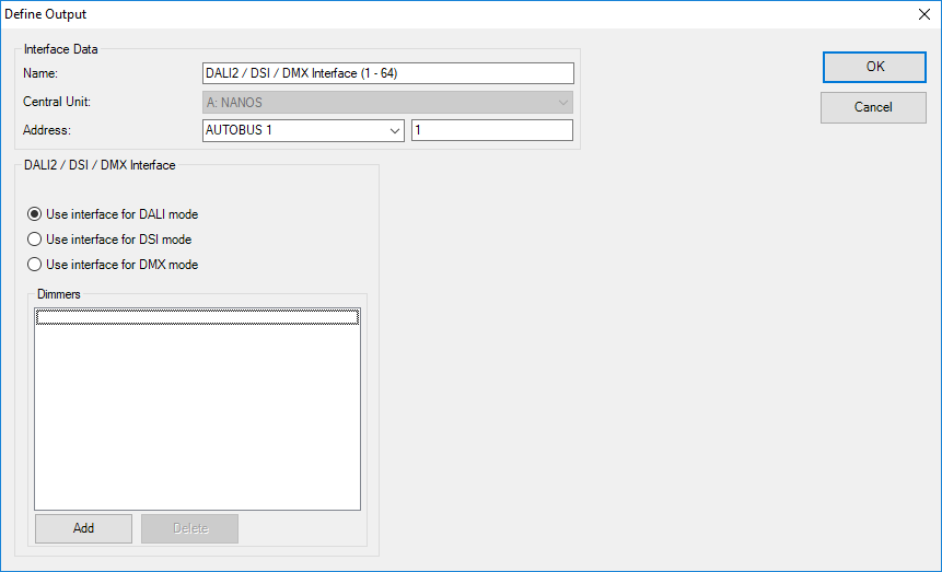 Depending on the mode you can configure up to 64 dimmers to this interface.