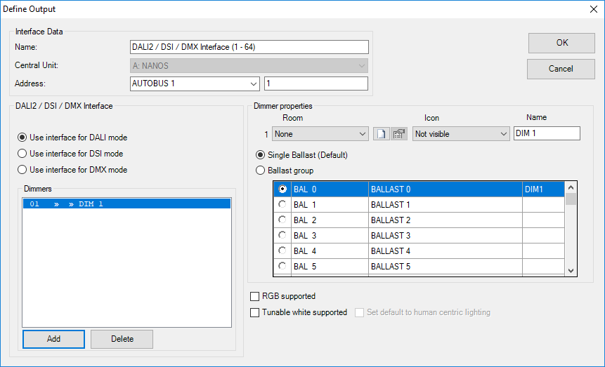 When a new Dimmer is added, the first available ballast is assigned to this dimmer.