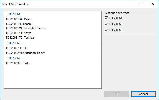 Sélectionnez le type d'esclave Modbus:
