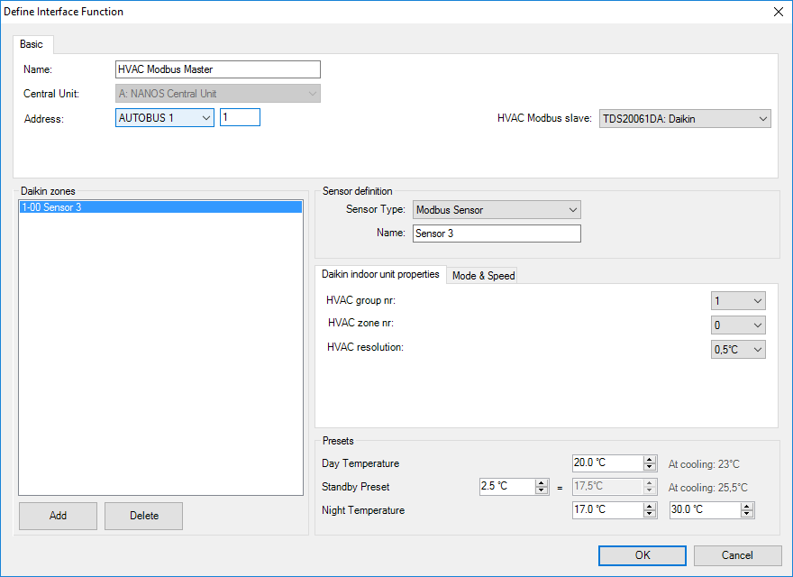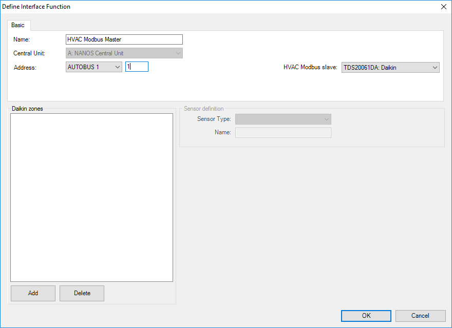 Pour chaque unité intérieure, un capteur doit être ajouté à la liste, configurer les paramètres suivants: