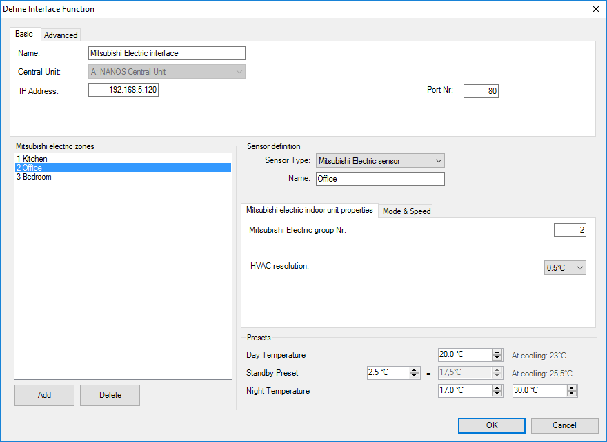 - Voeg alle binnentoestellen toe zoals gebruikt in de Mitsubishi Electric Ethernet Gateway en geef elke zone het correcte Mitsubishi Electric zone nummer en naam
