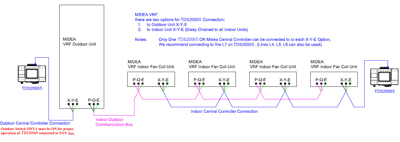 For Daikin or Mitsubishi Electric Non—VRV/VRF equipment, DC voltage supplied by the TDS20065 might be required for proper operation. Before enabling DC output from TDS20065 make sure there is no DC voltage on HVAC communication line. If no DC voltage is detected: Daikin 14-16V DC, Mitsubishi 28-30V DC, do following: