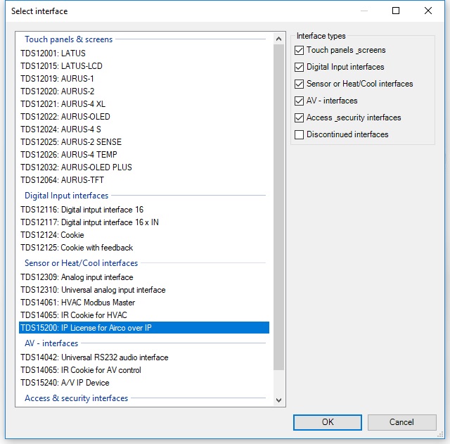 - Go to the list of 'I'-interface press the button New and select a TDS15200: