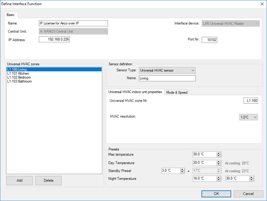 In the first Tab you also can also change the resolution from 1,0° to 0,5° only do this if the HVAC system is able to, most systems can only be controlled with steps of 1 degree. We recommend to leave it on 1 degree.