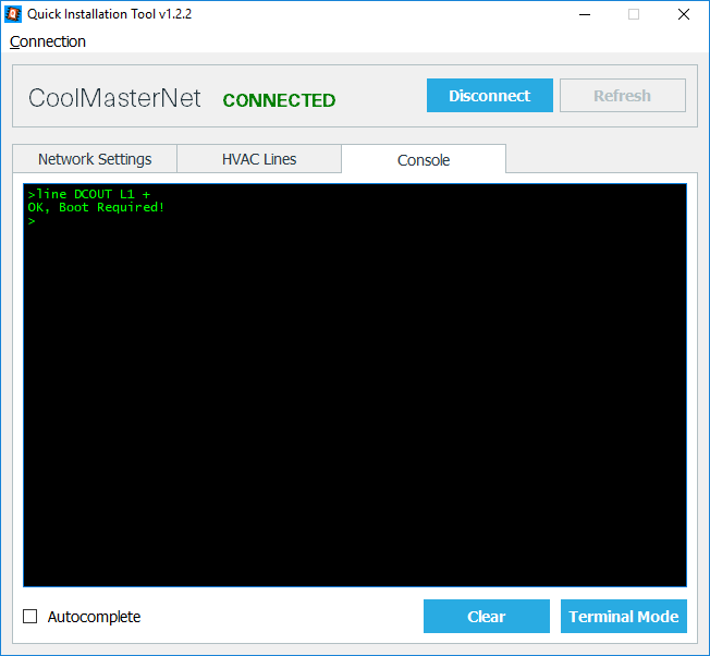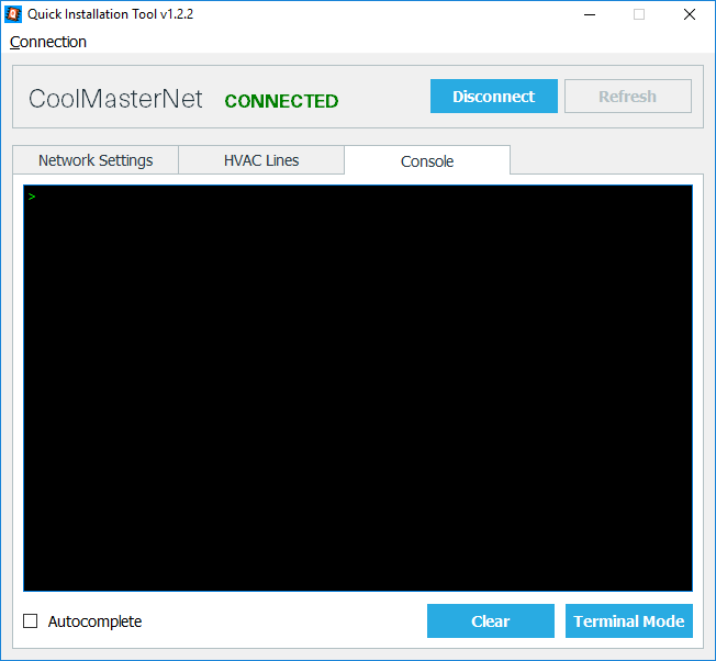 - Press Connect and select the tab ‘Console’: