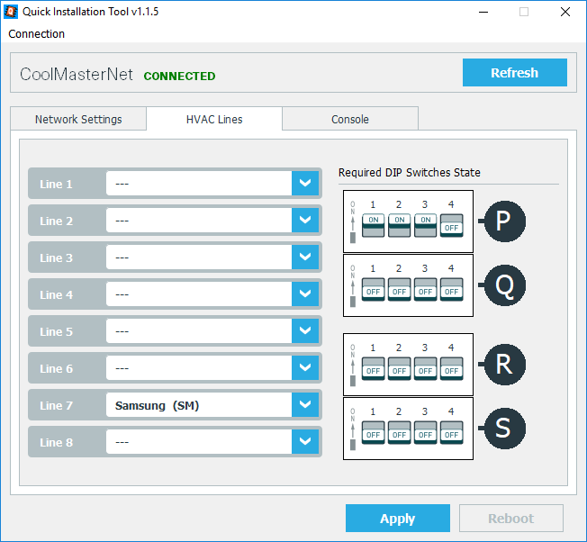 - Select the HVAC brand on the correct line (L1, L7 or L8). Make sure that only one is selected. See table below for the brand specific line: