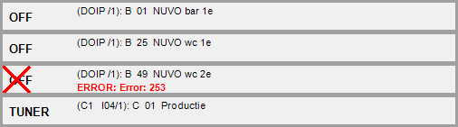 Une croix rouge sur le dessus de l'état indique que l'unité centrale ne connaît pas l'état de la zone, il indique seulement l'état attendu. Des messages d'erreur affichés en rouge en disent plus sur l'erreur.